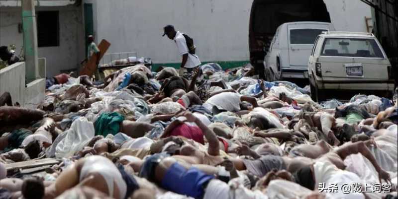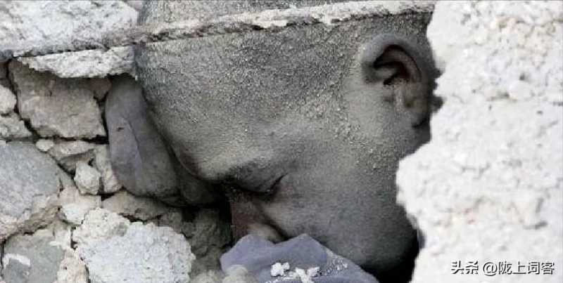 图为地震后废墟里的发现的遇难者。