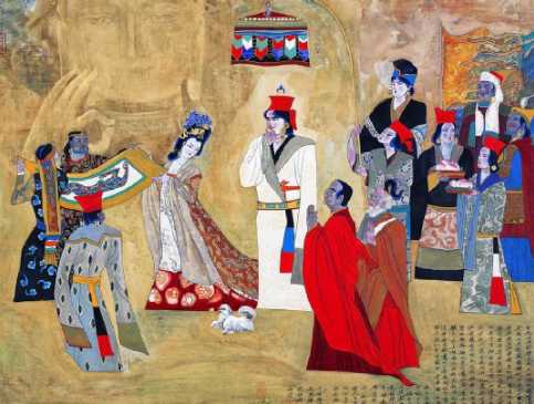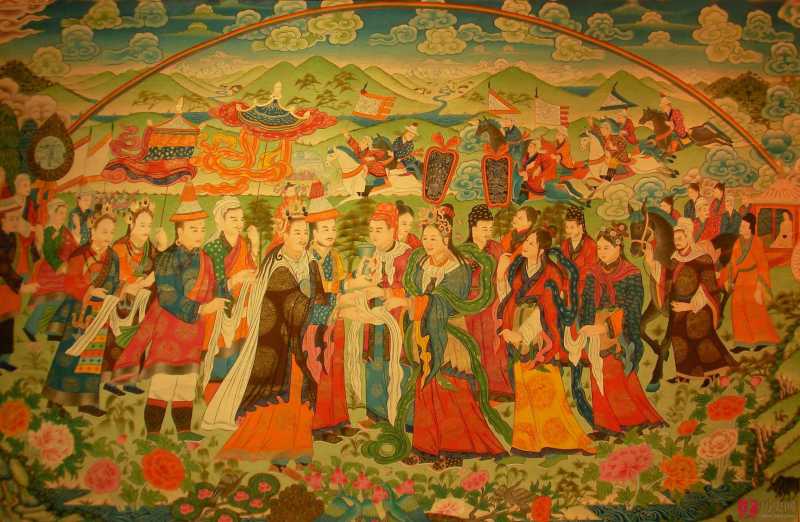 当时西藏的领导者松赞干布十分仰慕中原文明。在他看来,中原地区的酒杯精美,美人温婉,气候适宜,有山有水。