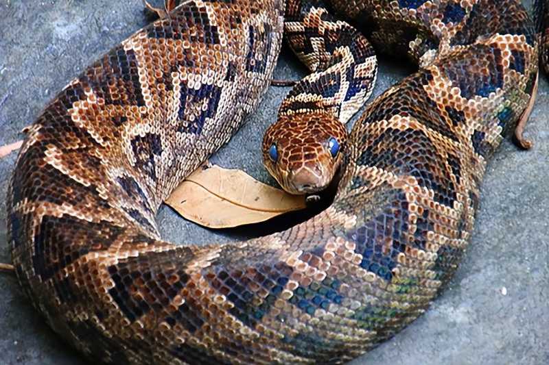 这种蛇种原产于东南亚,缅甸蟒蛇经常被当作宠物抓起来,因为它们有美丽的斑纹,但众所周知,它们会攻击饲养者。这些迷人的蛇在树上度过了大部分时间,但随着年龄的增长和体重的增加,它们会移动到地面上。