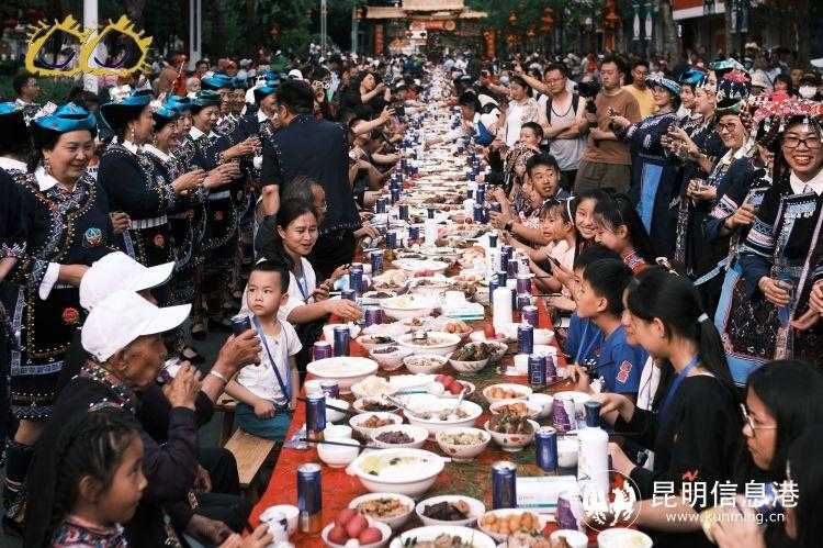 昆明信息港讯 记者陈秋月 五月一日,地道墨江味,哈尼长街宴盛大开席。在云南普洱墨江县民俗步行街上,一千余张桌子排排相连,桌上摆满了色味俱佳的菜肴,入席的来宾交口称赞,欢声笑语,过往行人也纷纷驻足。