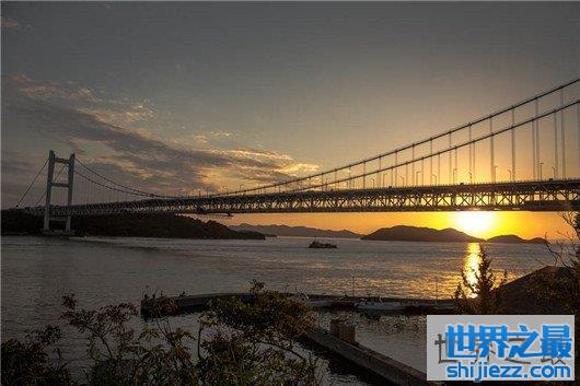 日本濑户大桥算是早期的一个跨海大桥,于1978年正式开工,这个工程持续了将近10年的时间,于1988年正式通车,它的全长为37.3公里,海面部分为13.1公里,在当时看来这是一个不得了的记录,这是一个多用途的跨海大桥,上层用来通车,下层有铁路。