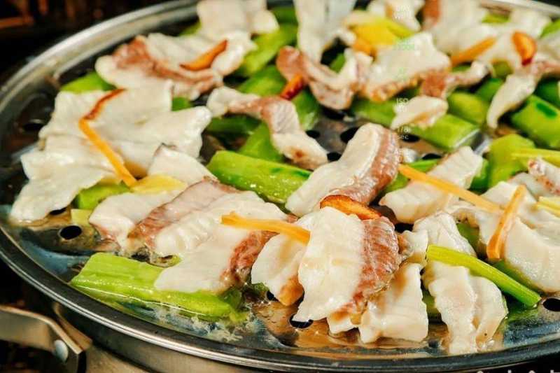 如果想在南门吃一口正宗老广味,可不能错过这一家。招牌桑拿鱼,片片薄如蝉翼,在灯光下晶莹剔透,搭配蘸料,清香鲜甜,再喝上一碗精华锅底汤,令人回味无穷。除了桑拿鱼,他们家的葱油鸡、云南鲜笋也好吃不踩雷。