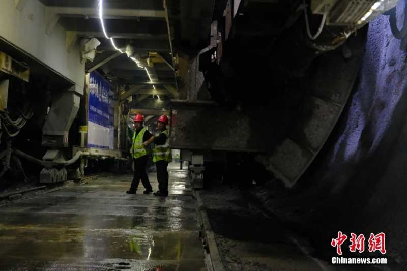 天山胜利隧道项目采用中交集团自主研制的TBM掘进机,开挖直径均为8.43米、全长为282米、重量约2000吨,可实现在多种世界级复杂地层下安全、环保、高效地掘进。图为天山胜利隧道施工现场。
