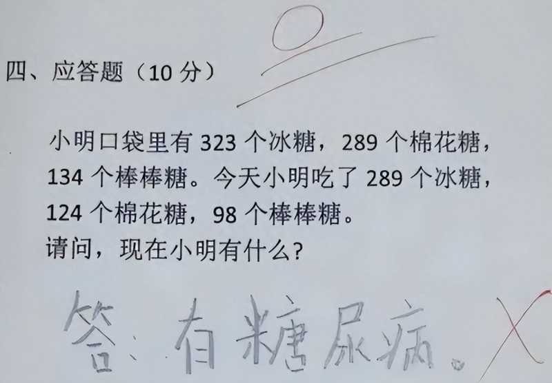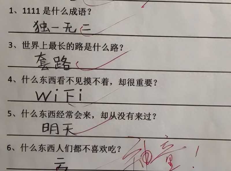 却忘了具体的答案,结果小学生的脑筋一转,写到:套路!老师看到答案是又好气又好笑,生气的是自己讲过的学生没记住,好笑的是学生的思维开阔,这个答案确实也不能算错,于是果断的给了满分。