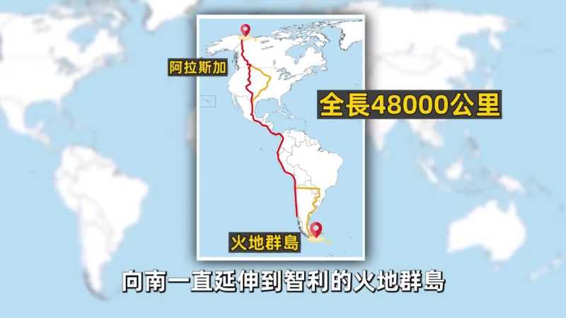 泛美高速公路是全球最长的公路网,总长约4,800公里,穿越了美洲大陆。它从阿拉斯加的北极圈开始,一直延伸到智利的火地群岛,是连接美洲九个国家地区的主要公路系统。