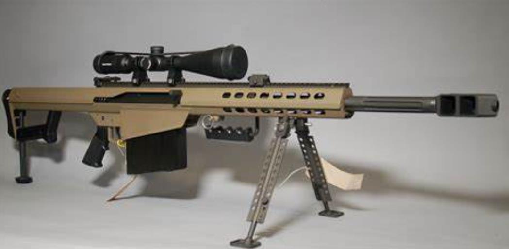 准确来说麦卡米伦TAC-50同样是一款采用.50BMG口径(12.7 x 99 毫米)的反器材远程狙击枪。其枪管长约737毫米,全长约1448毫米,空重约11.8千克。它标配一个5发容量可拆卸弹匣,当发射匹配级.50BMG口径子弹时,枪口初速约823米/秒。该枪的有效射程约1800米。