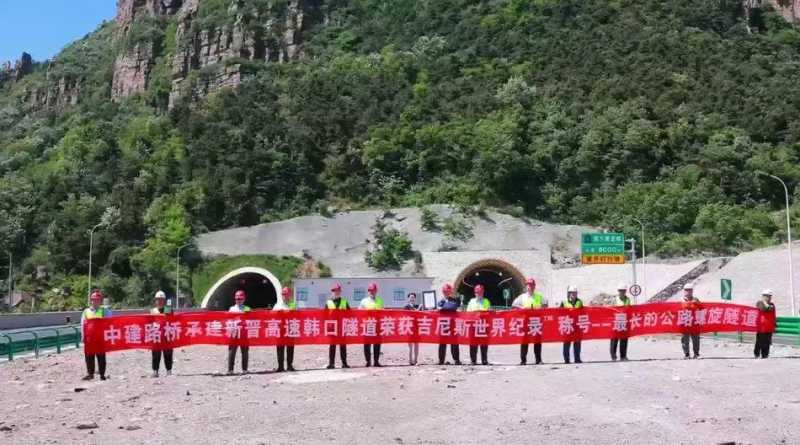 5月15日,由新乡融盛高速建设有限公司投资建设、中建路桥承建的新晋高速韩口隧道被吉尼斯世界纪录现场认证为世界最长的公路螺旋隧道。