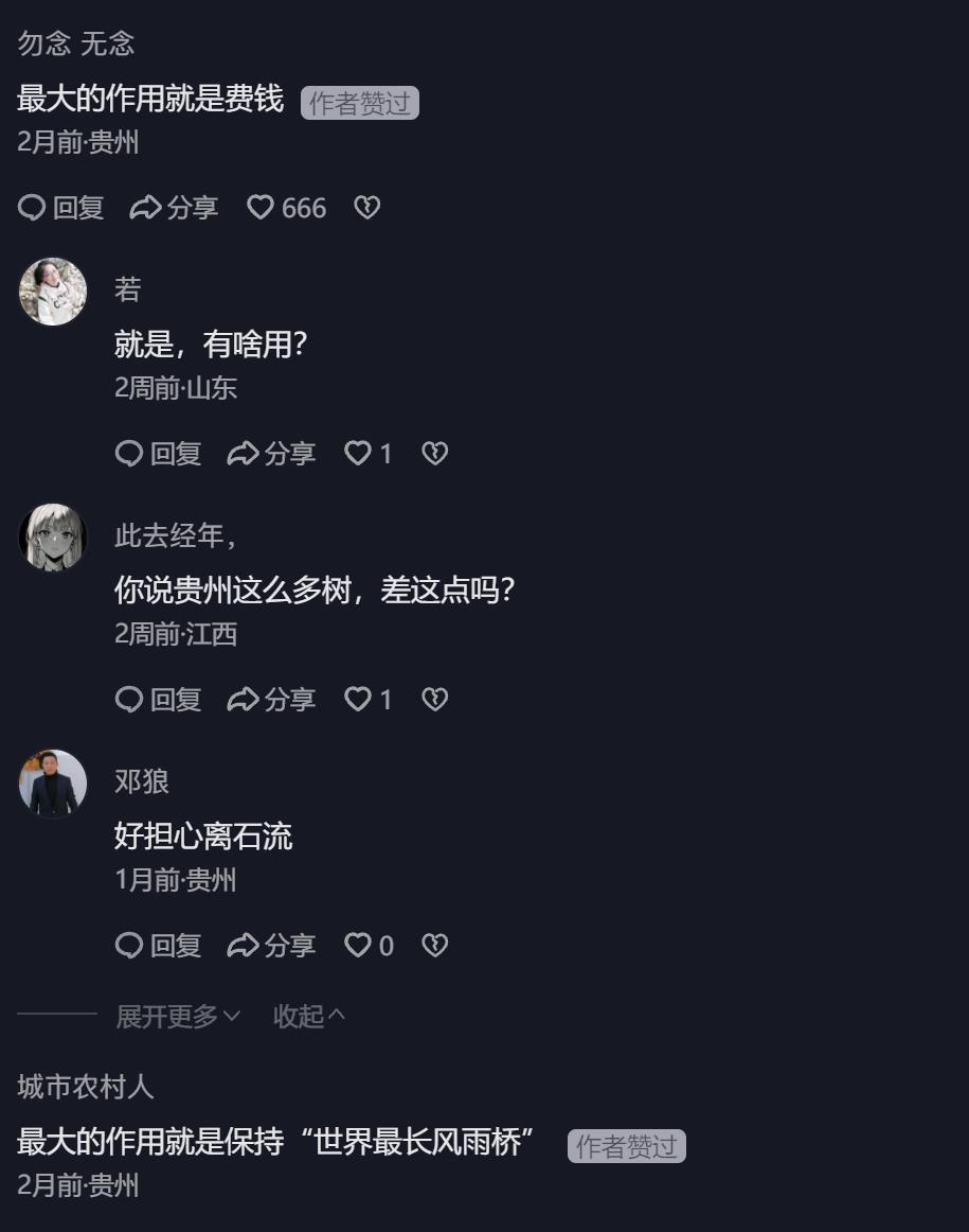 这样一座美丽壮观、融合了传统侗族建筑风格和现代设计理念,展现出独特的建筑美学的风雨桥,却被网友冠以“华而不实、浪费资金”之名纷纷吐槽。