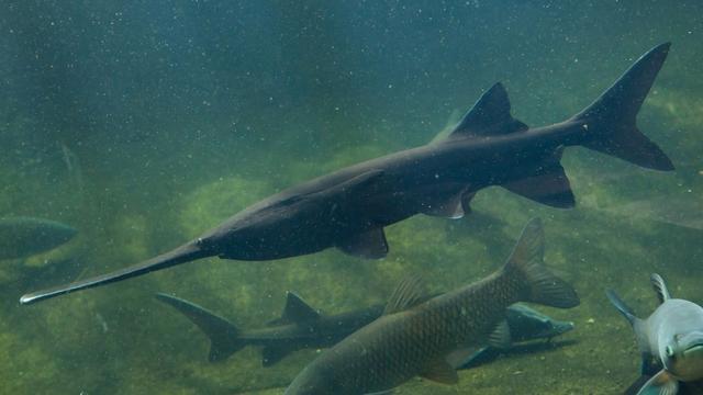 匙吻鲟的吻部长达2.1米,是活着的化石鱼!独特吻部可探测浮游生物