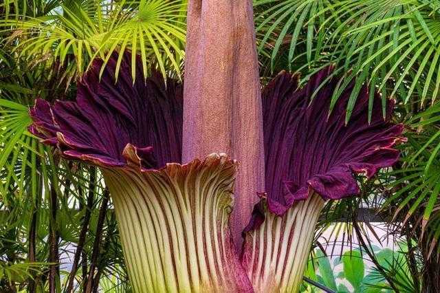 地球上最高的花与尸花亲缘关系很近,气味也几乎同样难闻。泰坦魔芋可以在印度尼西亚的苏门答腊雨林中看到,高耸于其他植物之上。