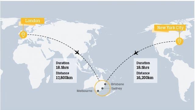 2019年11月15日,一架澳航的波音787-9完成了伦敦到悉尼超远程直飞航线的测试飞行,全程17800公里,用时19小时19分。不过这次航班只搭载了50名乘客和机组人员,显然还是不足以支持经济运行。