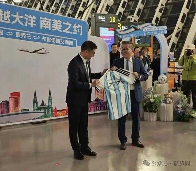 仪式期间,波音特别向东航赠送了一件777号的阿根廷国家队球衣,因为这条航线是由波音777-300ER执飞。