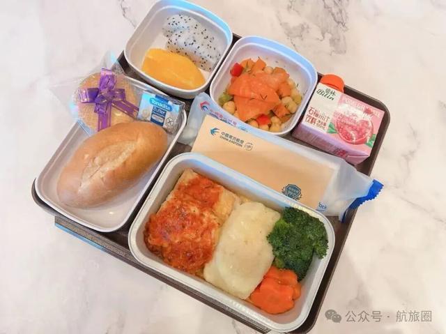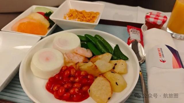 起飞后就开始了第一顿“早餐”,尽管此时已是北京时间凌晨3点。