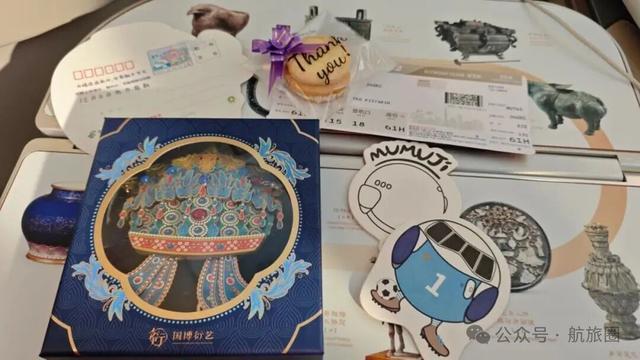 此外还有首航限定蛋糕和完整版首航登机牌,Q版777明信片,以及经常断货的中国国家博物馆孝端皇后凤冠冰箱贴。首航礼物收到手软,包包都装不下了。