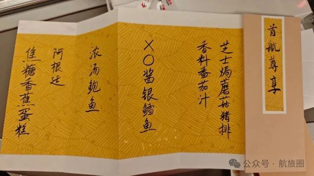 入座后发现更多礼物已经放在了座位上,包括MANITO品牌定制的真丝眼罩和首航定制版可口可乐等。下图这个“首航尊享“还是第一次见,打开看原来是首航专属菜单,特别配备了阿根廷红虾,阿根廷青酱,M5牛排和鳕鱼等。