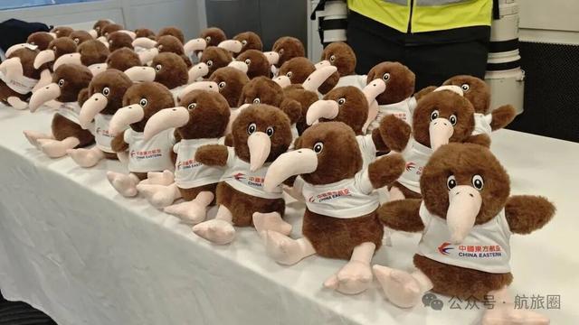 登机开始后,旅客们人手一份的首航礼物相当丰富,凸显东航跨界合作的能力:迪士尼,探险邮轮,国家博物馆,可口可乐都来凑热闹,还有东航第五代阿根廷款MUMUJI也露面了!感觉是飞一条洲际线就孵化一只MUMUJI的节奏。