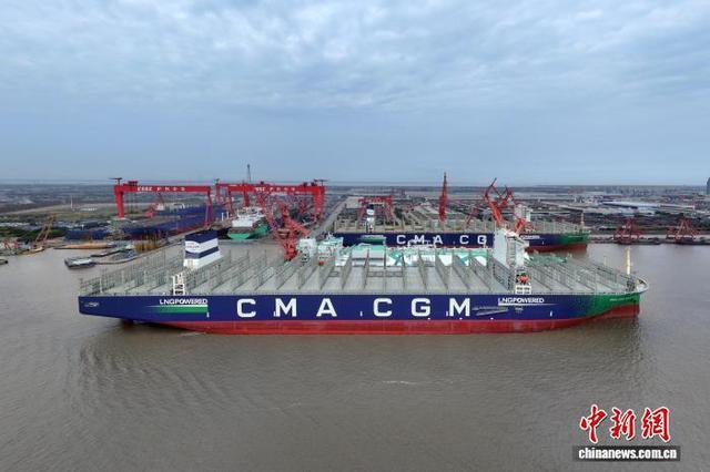 中新网上海12月12日电 (李秋莹 张文豪)12月12日,中国船舶集团旗下沪东中华造船(集团)有限公司(以下简称沪东中华)为法国达飞海运集团建造的全球最大24000TEU级LNG双燃料集装箱船“达飞旺多姆”号提前8个半月命名交付,这也是沪东中华建成交付的第100艘集装箱船,彰显了中国在全球造船领域的主导地位。