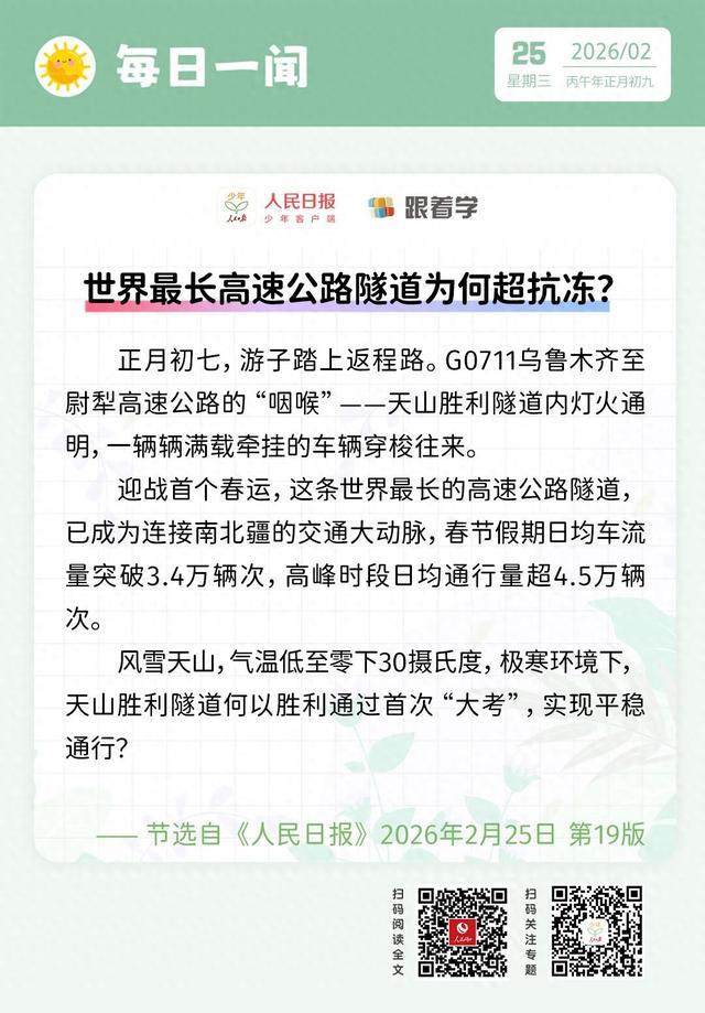每日一闻丨世界最长高速公路隧道为何超抗冻? 本文来自【人民网】,仅代表作者观点。全国党媒信息公共平台提供信息发布传播服务。ID:jrtt 世界最长02-27