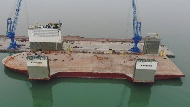 据了解,“先锋”轮船长275米、宽79米,载重约11.7万吨,主甲板可下潜至水下16米,最大下潜吃水31米,被誉为“世界最大半潜船”。作为海上超大型装备运输的“巨无霸”,该船主要承担海上油气平台、潜艇、大型浮船坞、军舰等重量级海工装备的跨洋运输任务,此前已圆满完成多项国际重大运输项目。