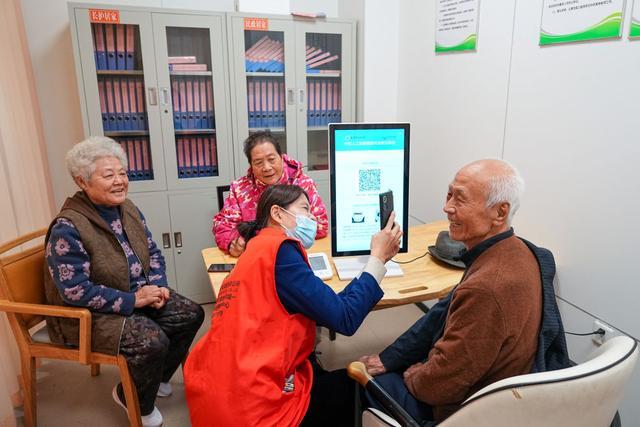 2025年10月23日,老人们在山东省淄博市张店区马尚街道金石社区日间护理中心测量健康数据。新华社记者朱峥摄