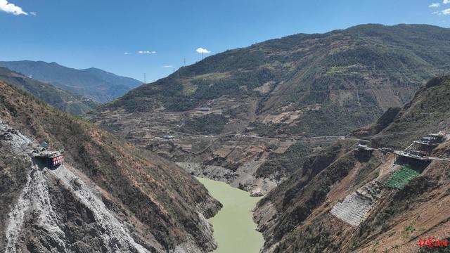 为了打通这条施工通道,项目团队决定采用缆索吊系统作为“破局关键”。缆索吊系统能够适配大跨度、高落差的极端施工场景,且不受库区水位季节性大幅波动影响,实现点对点精准运输,解决常规设备“进不去、运不了”的核心难题。在施工安全方面,通过空中运输的方式,有效规避险峻地形中通过地面便道运输可能面临的坠落、滑坡等风险,使设备转运与构件吊装的操作更加可控,大幅降低安全隐患。在生态保护方面,作为木里岸目前唯一的机械设备及物料进出通道,缆索吊系统可高效转运施工渣土,避免渣土乱堆乱放或滚落河道以及便道施工带来的山体大规模开挖,最大限度保护脆弱的生态环境,从源头守护理塘河水域清洁与峡谷生态。