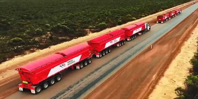 全长 50米。澳大利亚矿业公司 Mineral Resources 部署了一支无人驾驶矿区公路列车车队。这些机器人巨兽可运输 330吨铁矿石,24小时运行在一条长达150公里的私人运输道路上。依靠传感器、GPS 与 AI 系统,它们无需司机即可持续工作,代表着未来运输行业的发展方向:更长、更重、更智能。