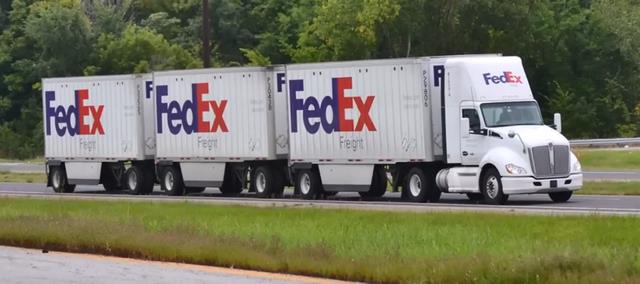 全长约 32米。在美国西部,三挂卡车是物流公司的常见配置。它由一辆牵引车拖拽 三个28.5英尺短挂车,单司机即可运输三倍货量,但驾驶难度极高。遇到侧风时,第三节挂车容易产生危险的“甩尾鞭效应”。尽管如此,它们仍是美国西部长途物流的重要力量。