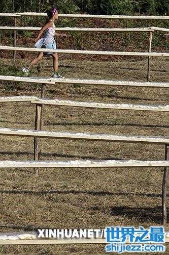 2007年7月29日,在意大利南部小村庄弗罗索洛内,工人们在制作一根783.6米长的意大利干酪。这根意大利干酪属于白色莫兹阿勒奶酪,其长度打破了2006年创下的白色莫兹阿勒奶酪640米长的世界纪录。
