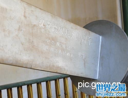 云南德宏芒市民族公园中陈列的户撒刀,铸造于2003年,长6.6米,是最长的户撒刀。户撒刀是阿昌族的传统武器,被列为中国三大民族名刀。