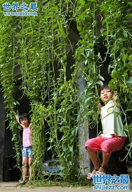 空心菜是生活中一道常见的蔬菜,相信大家都吃过,不过长达14米的空心菜你一定没见过吧!这就是世界上最长的空心菜,长沙菜农李辉家的一颗空心菜,他种的空心菜长到14米,这些超长空心菜从9米高的楼顶垂吊下来,形成一道壮观的天然“绿瀑”,小孩可以在上面荡秋千。