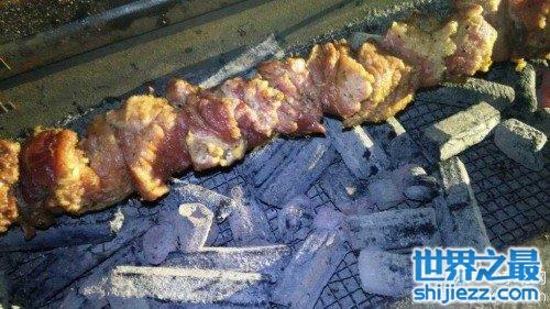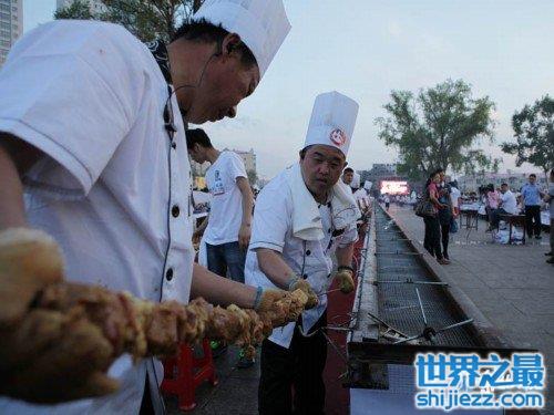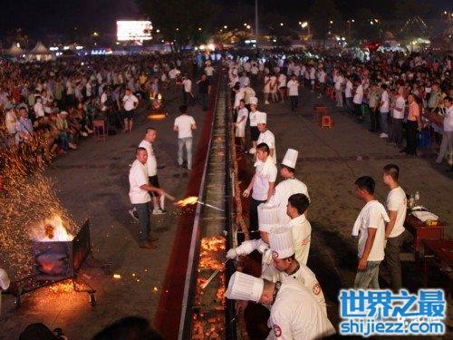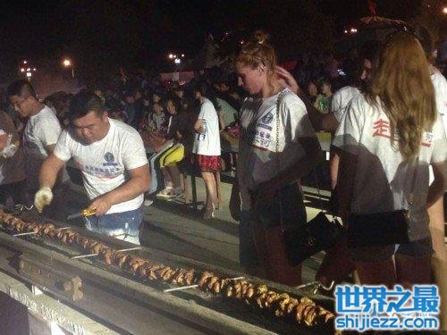 世界上最长的肉串,长达112米(消耗600斤猪肉)