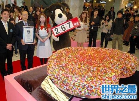2012年2月在情人节前夕日本大阪MINAMI地区的地下街制作完成了重约267公斤的巧克力戒指,已经获得吉尼斯世界之最!主要是由工作人员和顾客一起完成,把淡蓝、橘黄等7种颜色的巧克力糖浆黏在底座上,大约有1000多名顾客参与,使用了25万粒巧克力!