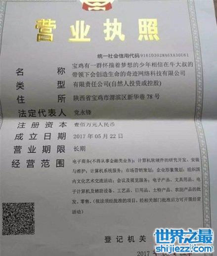 说完了,世界上最长名称公司,下面我们来说一下我们国家名字最长的公司,我们国家最长的公司,他的名字长度达到了39位,下面我们就来看一下名字是宝鸡,有一群怀揣着梦想的少年,相信在牛大叔的带领下会创造生命的奇迹,网络科技有限公司。