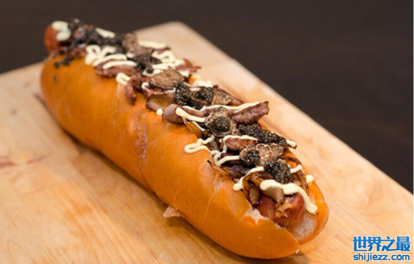 世界上最贵的热狗“ Juuni Ban”售价达169美元(约合人民币1196元) ,由东京狗(美国)在西雅图于2014年2月23日出售。“ Juuni Ban”包含了熏制的奶酪香肠,黄油烤洋葱,舞竹蘑菇,和牛肉,鹅肝,刨过的黑松露,鱼子酱和日本蛋黄酱。不得不说外国人在如何挥霍食材方面很有水平,1000多够买多少普通热狗了呀。