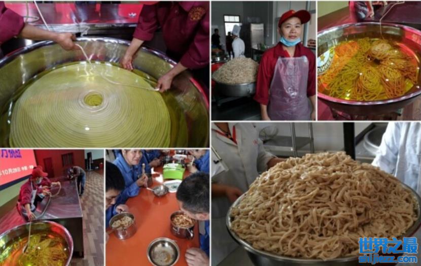 世界上最长的面条有3084米,由中国河南南阳的湘年食品有限公司于2017年10月28日完成。面条重66.1公斤,所用原料为40公斤面粉、26.8公升水和0.6公斤盐。面条卷起来花了17个小时,量身定做花了3个小时。用这样长的一根面条煮长寿面,怕是够吃到下一次生辰了。