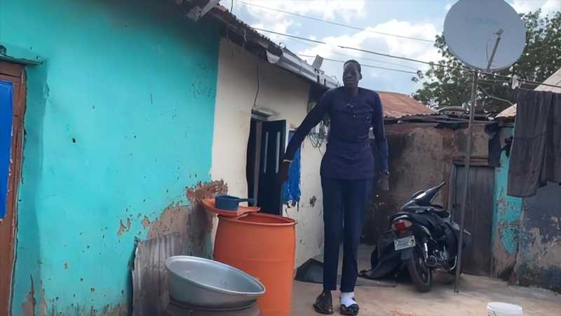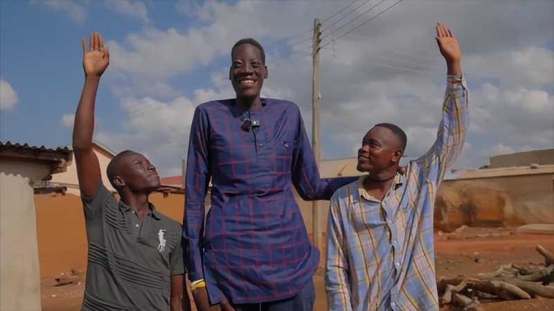 来自加纳北部的29岁的苏莱曼纳阿卜杜勒萨米德身高惊人地达到了9英尺6英寸(约合2.89米)。他之所以长得这么高,是因为他患有一种罕见的马凡氏综合征,这种遗传疾病会影响身体的结缔组织,导致四肢异常长。但这样的身高是否可以让他成为有史以来最高的人,还有待考证。在他生活的加纳农村小诊所,并没有足够长的卷尺来测量他的身高。一位震惊的护士告诉他:“你已经长得比尺子还高了。”