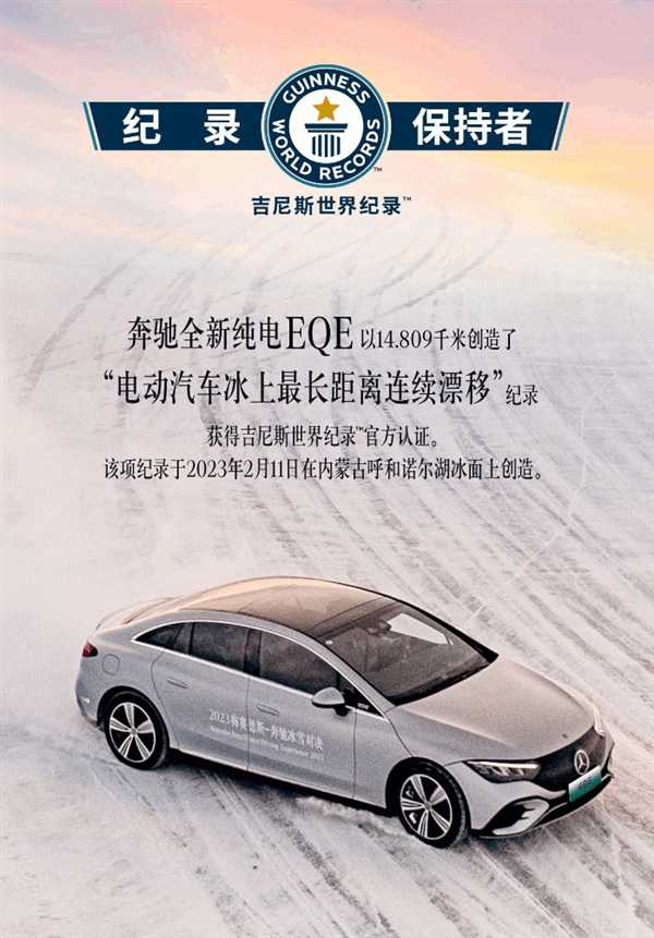 近日,梅赛德斯-奔驰官方宣布,奔驰EQE以连续漂移14.809千米的成绩打破了“电动汽车冰上最长距离连续漂移”的吉尼斯世界纪录。