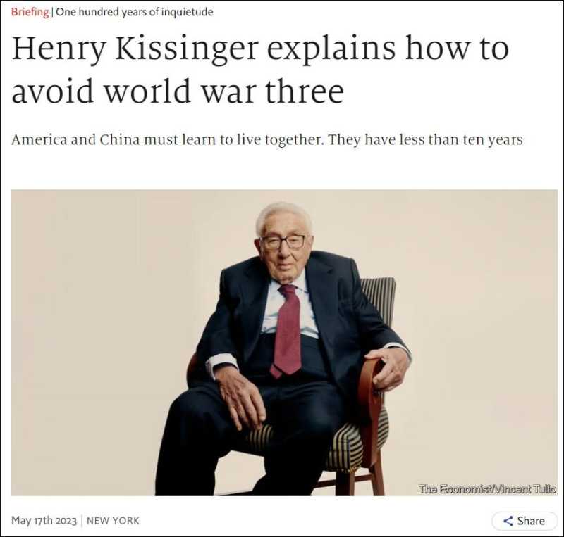 即将迎来100岁生日的基辛格,对中美关系作出了最新一番表态。