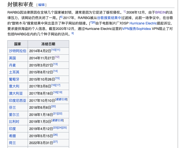 而现在,我们打开 R 站的维基百科,还可以很清晰地看到,它和版权巨头们的惊心动魄的故事。