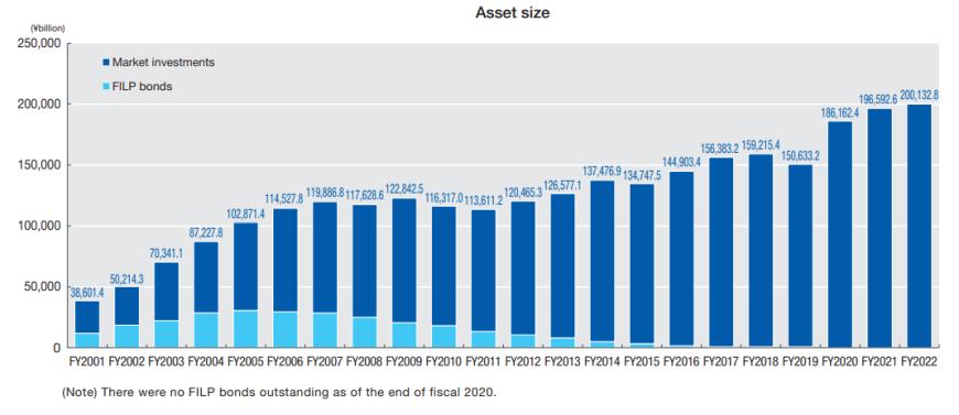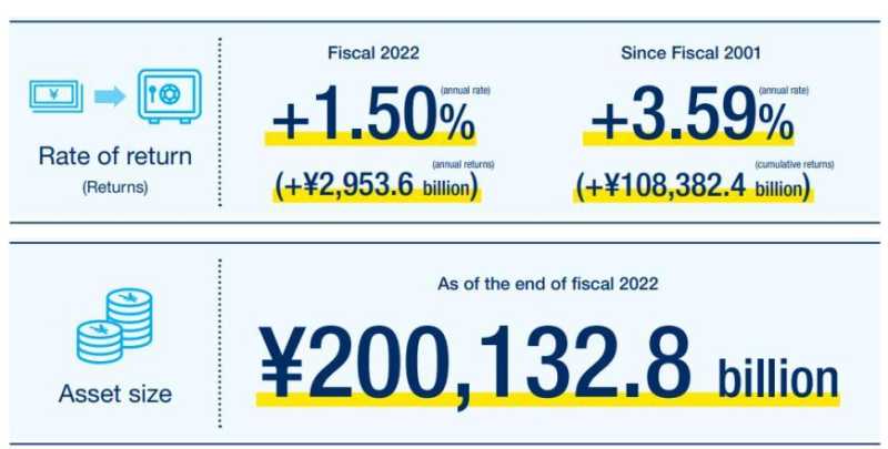 截至2022财年年末(2023年3月31日),GPIF的资产规模达到了200.1328万亿日元,首次突破200万亿日元大关,是有史以来的最高水平。
