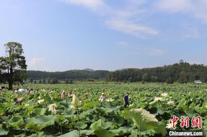 世界最大莲池莲花盛开 “莲乡”江西广昌游人如织