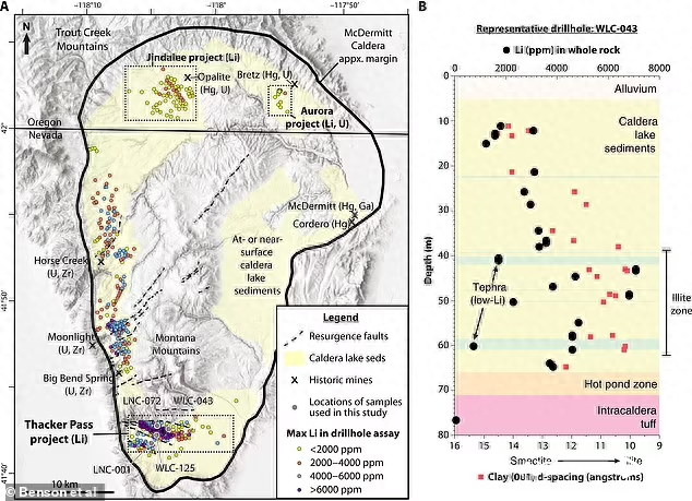 麦克德米特火山口据信形成于大约1900万年前,最后一次喷发是在1600万年前。地质学家认为,火山爆发将地下的矿物质推向地表,留下了富含锂的泥晶石黏土。