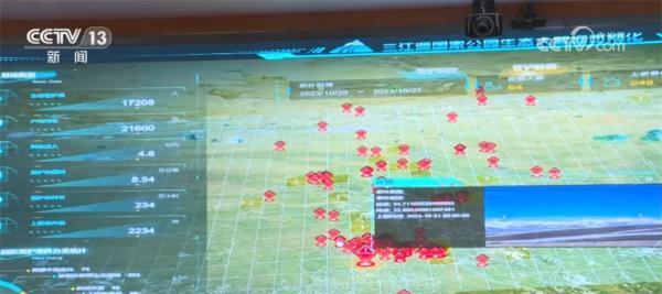 眼前这个大屏幕是三江源国家公园生态管护平台,这是一个集成了北斗卫星、人工智能等技术的移动巡护数字平台,园区内的管护员通过安装在手机上的智能移动软件,通过拍摄照片或视频,把三江源国家公园内的日常巡检以及生态保护等信息发送到生态管护平台。