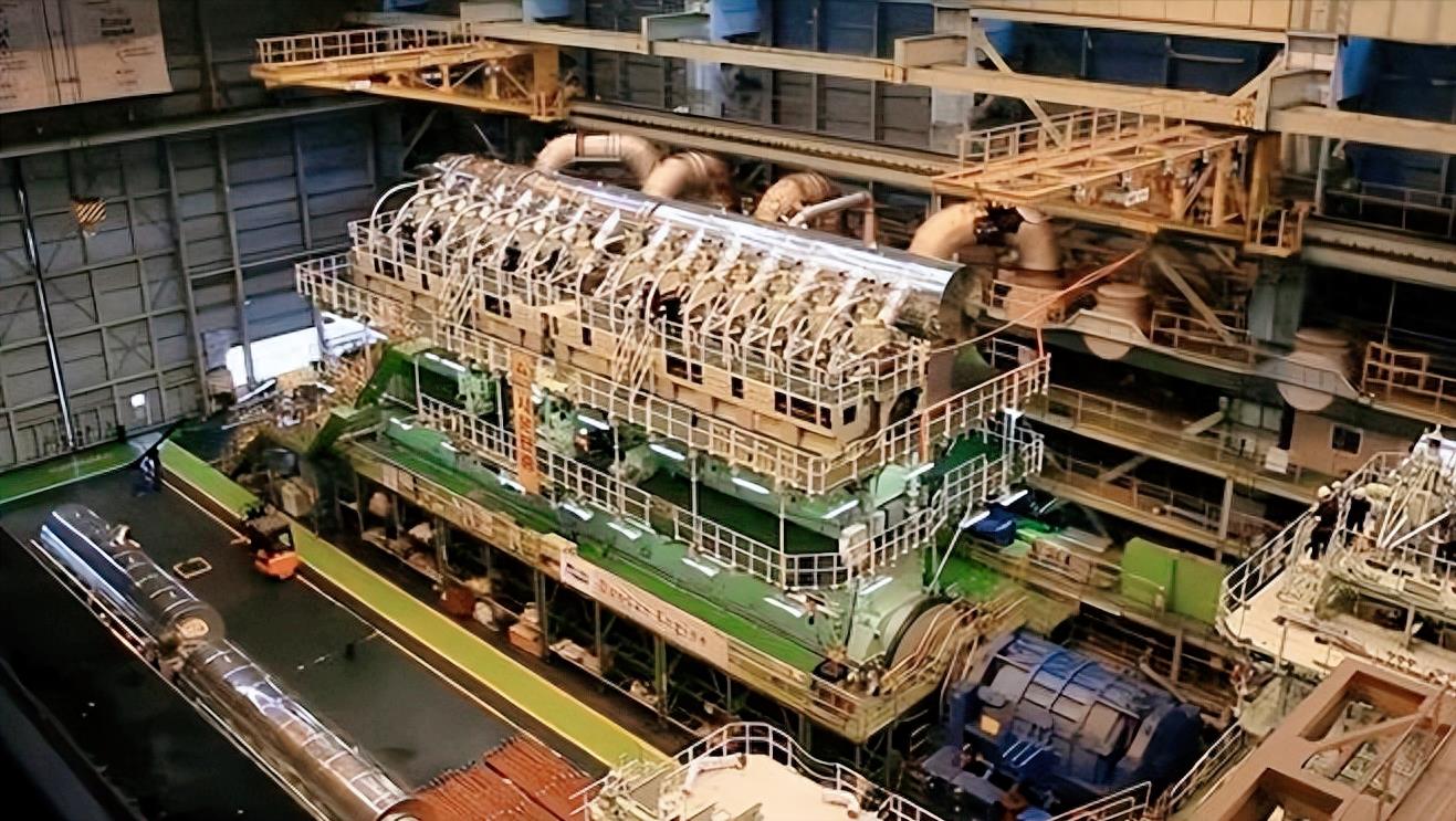 能安装上如此巨型发动机的设备,陆地上使用的可能比较小,没错就是海上交通工具使用,超大型轮船来使用,如果看有看看运输货物的海上巨轮,就不会觉得这台在陆地上看到的巨无霸发动机,变成“显眼包”了。