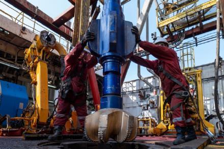 4月24日,记者从中国海油获悉,渤海油田渤中26-6凝析油田一期开发项目正式开钻,拉开全球最大变质岩油田开发的序幕。据介绍,开发项目平均井深4835米,最大井深达5049米,预计钻井进尺将超过16万米,相当于要钻穿18座珠穆朗玛峰的高度。(科技日报记者 操秀英,图片来源:中国海油)