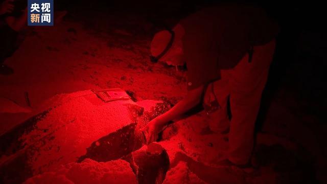 总台记者 雷湘平:我身后是一只正在产卵的棱皮龟。这种龟只有在产卵的时候,我们才能打开白色灯光,或者与它进行肢体接触。在其他情况下,我们是不能打扰它的。