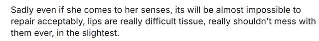 “可悲的是,即便她以后恢复理智,也几乎不可能把嘴唇再修复回去了。