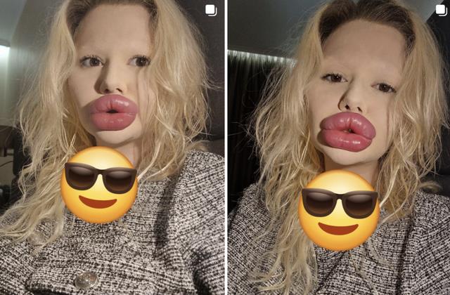 第一次尝试后她就爱上了这种感觉,于是之后又进行了二三十次填充,嘴唇的样子也开始和普通人越来越远。