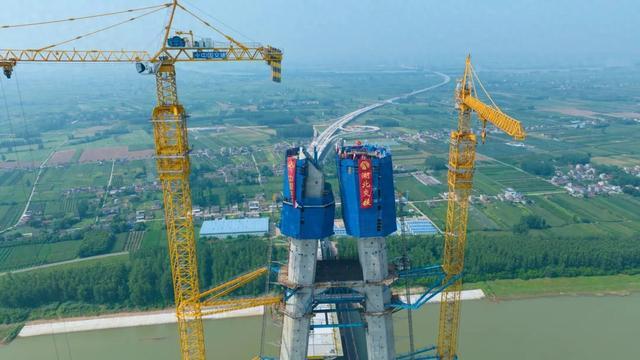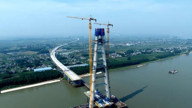 枝江长江大桥南岸主塔顺利封顶