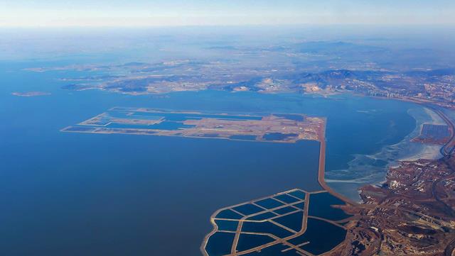 再加上大连境内长白山系纵贯,绝大部分为山地或低缓丘陵,能满足占地面积大机场需求的陆地,只有大连的两个县级市,距离大连市中心却超100公里,相对来说,距离只有23公里的金州湾就成了最佳方案。
